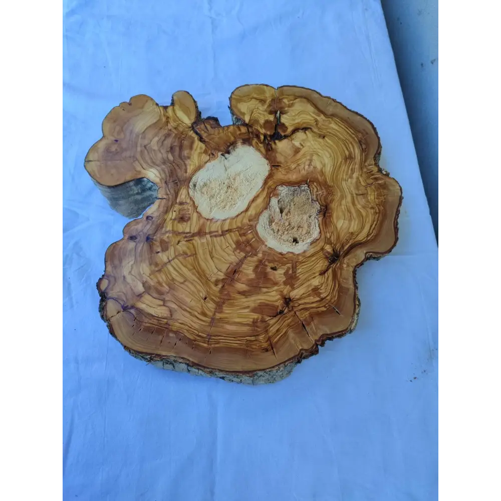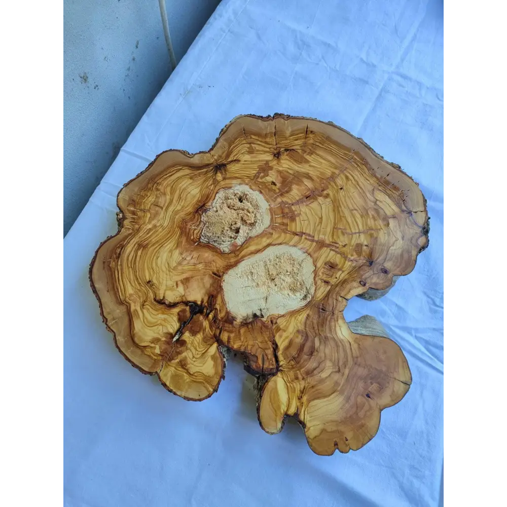 This thick, one-of-a-kind olive wood slab is cut from ancient Mediterranean olive trees estimated to be over 200 years old. Its bold grain flow, dense structure, and natural core features make it ideal for epoxy tables, sculptural furniture, and high-end craft projects.