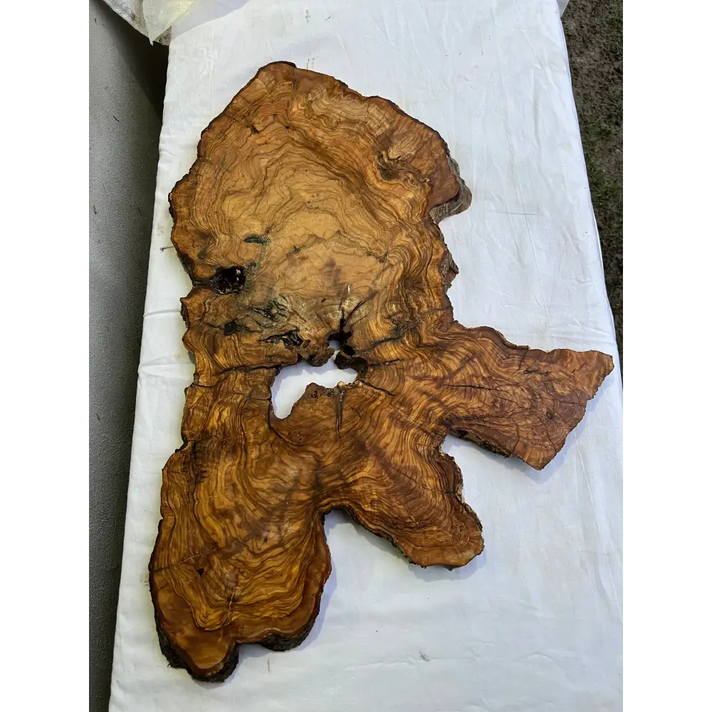 Welcome to the pinnacle of woodworking luxury. You are looking at a truly one-of-a-kind **Olive Wood Slab**, harvested sustainably and prepared with the utmost precision for the discerning artist and collector. This is not just a piece of lumber; it is a slice of history, boasting swirling grains and wild patterns that only centuries of growth can produce. ✨